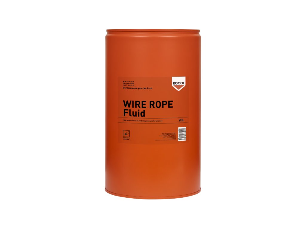 WIRE ROPE FLUID je vysoce výkonné vodu odpuzující mazivo na ocelová lana v kapalné formě. Vodu odpuzující pasta Wire Rope Dressing, může být aplikována i ve vlhkých podmínkách. Obsahuje ropné rozpouštědlo, zajišťující rychlou penetraci a vytváří ideální podmínky pro maximální ochranu ocelových lan. Rocol Wire Rope Fluid je úspěšně používán na zdvihacích zařízeních, tažných lanech, jeřábech, lodích a v oblastech kde působí slaná voda, nebo v oblastech s nepříznivými podmínkami.